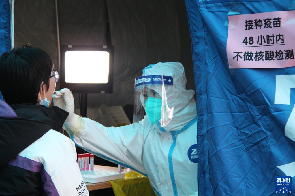 1月25日,在北京市丰台区马家堡街道西里第二社区核酸检测点,工作人员为居民进行核酸采样。