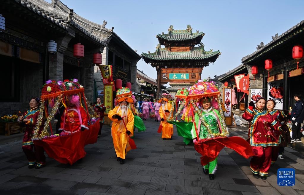 1月25日,2022锦绣太原中国年·凤舞龙城花灯会在太原古县城开幕。这是演员在进行民俗表演。