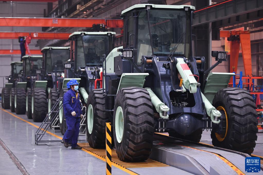 1月25日,在中铁长安重工有限公司西安阎良生产基地,工人在总装车间查看即将交付的机械设备。