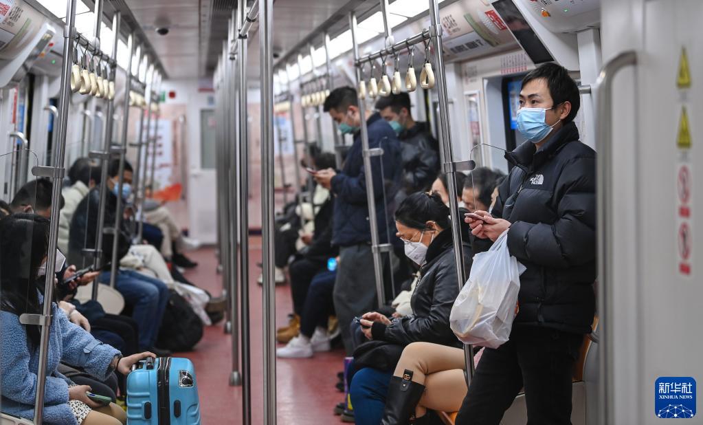1月25日,人们乘坐西安地铁出行。