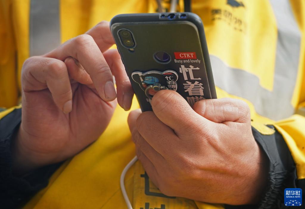手指不够协调的许龙庆在用手机接单(1月19日摄)。