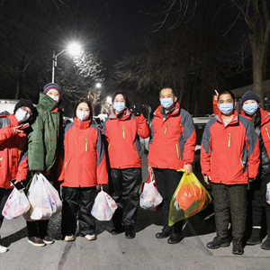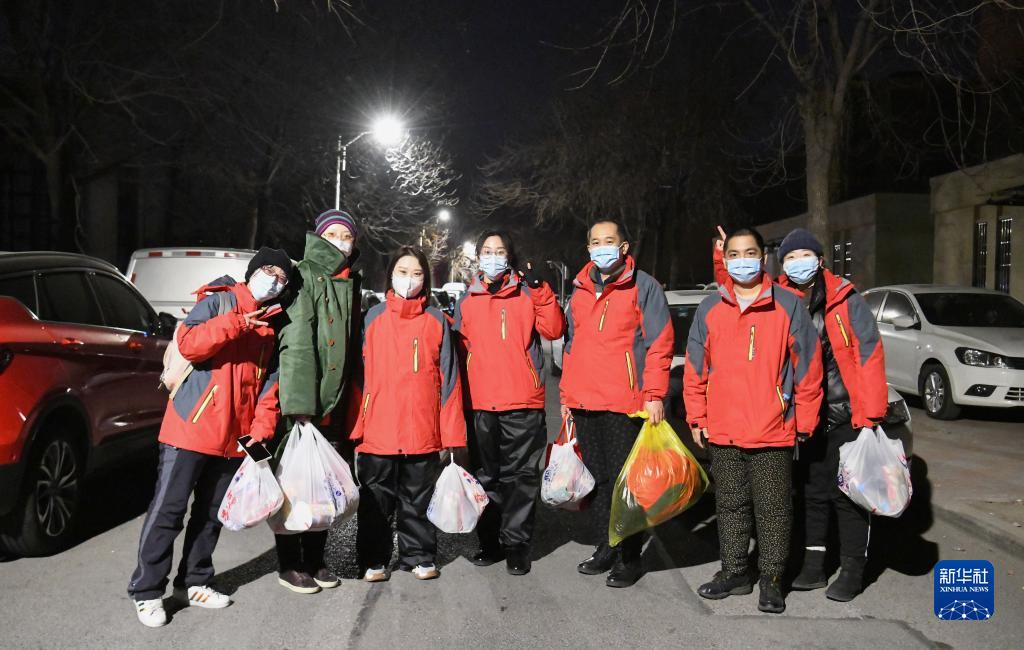 这是天津市第三中心医院派出的一支负责天津市河东区东新街道第四轮全员核酸检测工作的采样小组,黄馨仪(左一)与同事们在工作开始前合影(1月20日摄)。