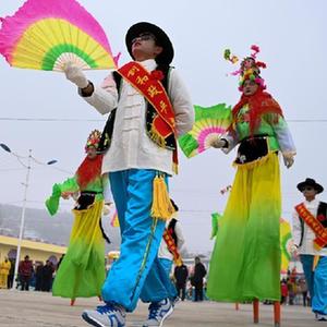 1月26日,在和政县陈家集镇陈家集村,村民表演扭秧歌。