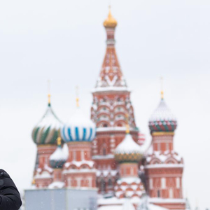 1月26日,一名男子在俄罗斯首都莫斯科红场上拍照。