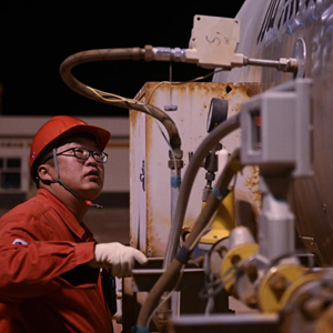 1月25日,中国石油天然气集团公司青海油田公司采气一厂工人在夜里巡查。