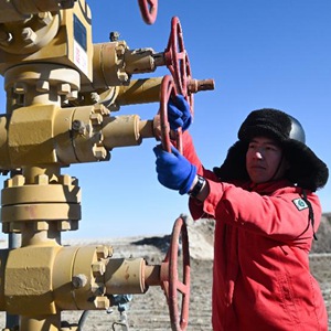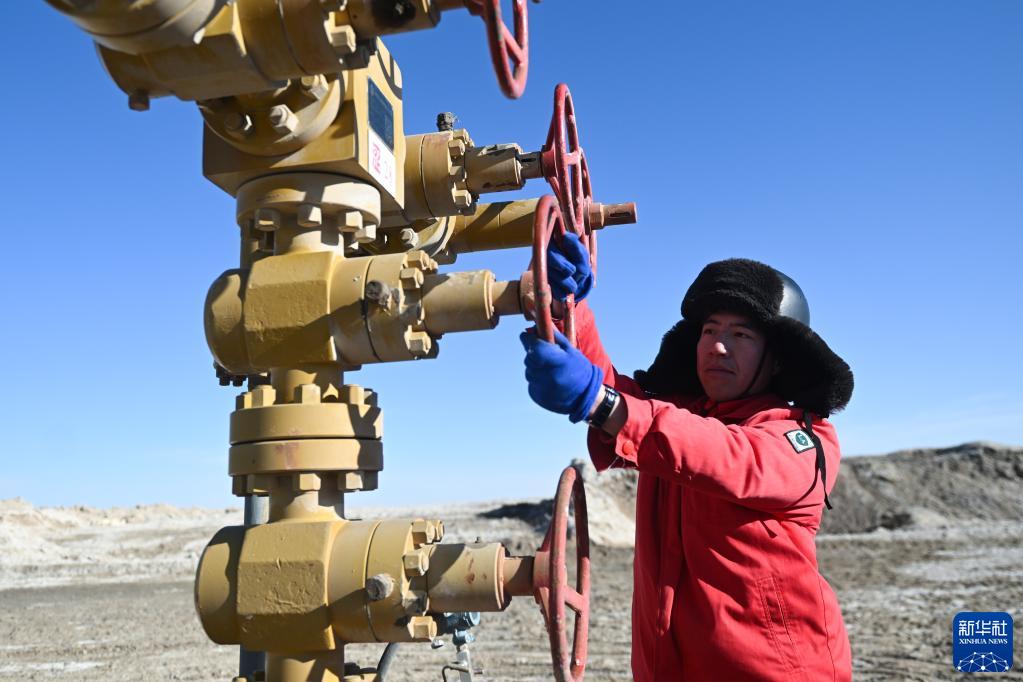1月26日,在中国石油天然气集团公司青海油田公司采气一厂,工人拧紧装置阀门。