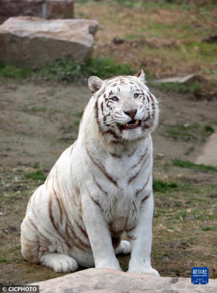 ↑2022年1月9日在江苏省南通森林野生动物园拍摄的白虎。CICPHOTO/许丛军 摄