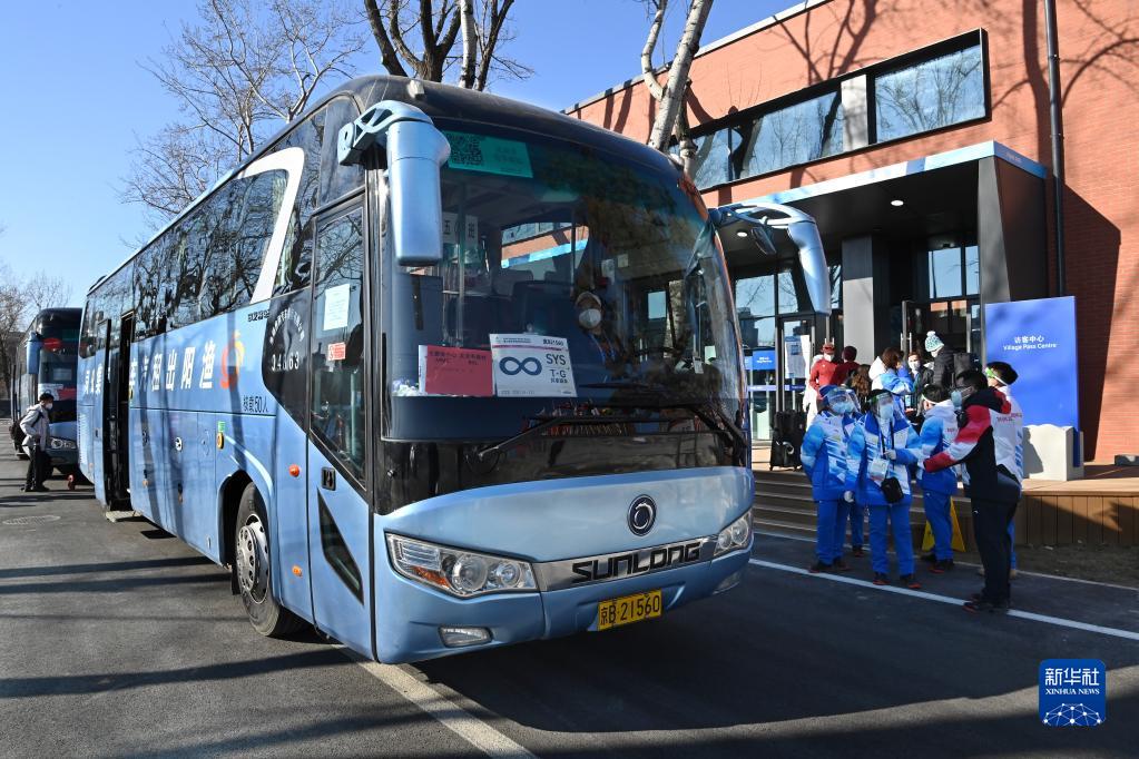 1月27日,一辆大巴抵达北京冬奥村访客中心。