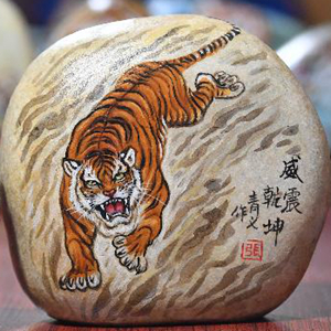 农历虎年将至,陕西省西安市鄠邑区的农民画家以石材为画布,创作虎主题作品迎接新春佳节。
