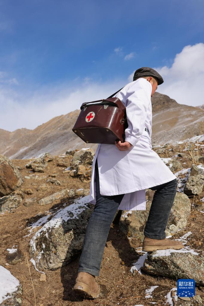 在新疆昭苏县阿合牙孜沟,牧业医院的医生在巡诊路上(1月25日摄)。