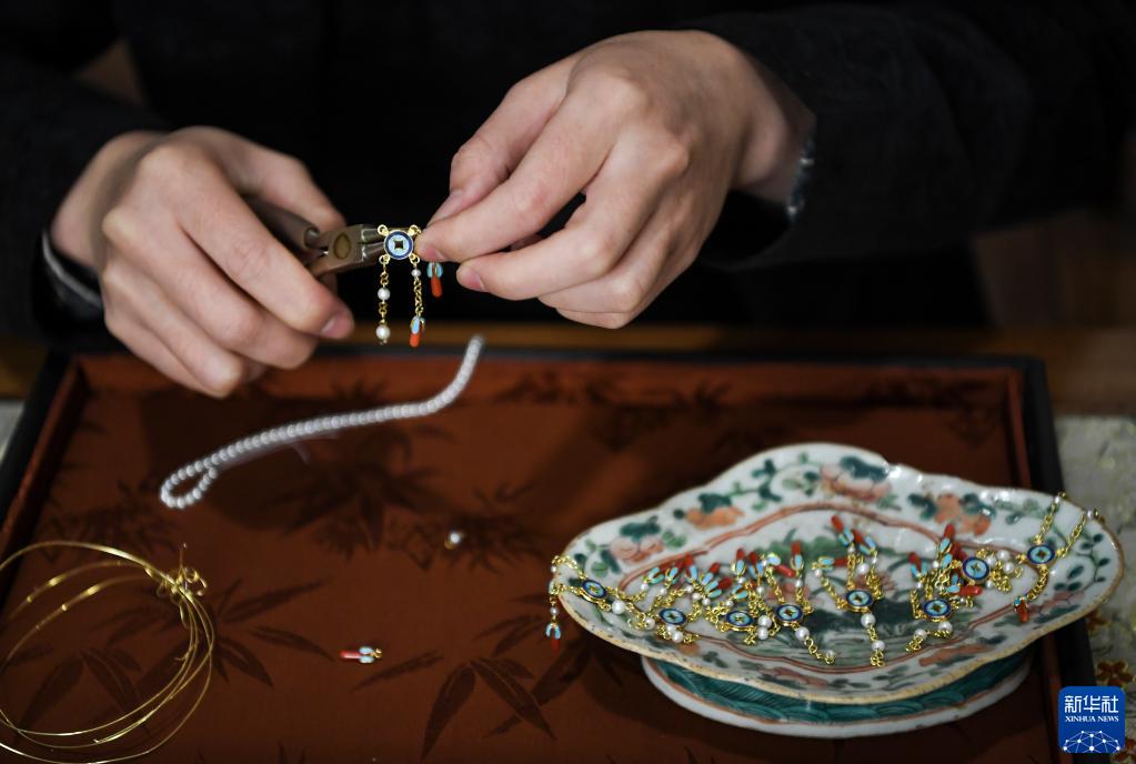 辜国强还借助短视频平台,向观众介绍花丝镶嵌的历史文化、制作过程及其魅力所在。“我想通过这种方式,让更多人了解花丝镶嵌这项传统技艺,为技艺得到更好保留和传承作出努力。”辜国强说。