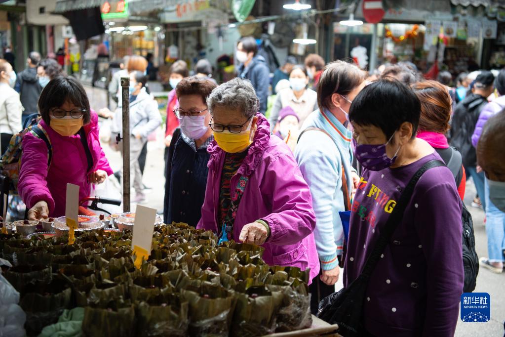 1月25日,市民在澳门义字街的晶字饼店选购年糕。