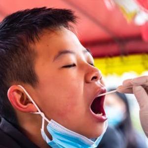 1月28日,在贵州省安顺市西秀区驼宝山广场一临时核酸检测点,医务人员对居民进行核酸取样。