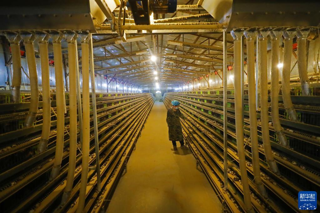 1月27日,在辽阳县壮大畜牧养殖专业合作社,工人在查看鹌鹑生长情况。