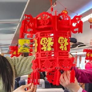春节临近,中国铁路成都局集团有限公司重庆客运段联合重庆铁路公安处组织青年职工,将重庆西北环线C451次列车装扮一新,在做好疫情防控的前提下,为旅客带来一场自编自演的“高铁春晚”,让奔波的旅客增添欢乐,在旅途中体验别样“年味”。