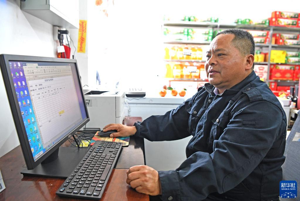 1月27日,黎镇在南宁市雄鹰农产品专业合作社的“邕宁乡村振兴农产品体验馆”内工作。