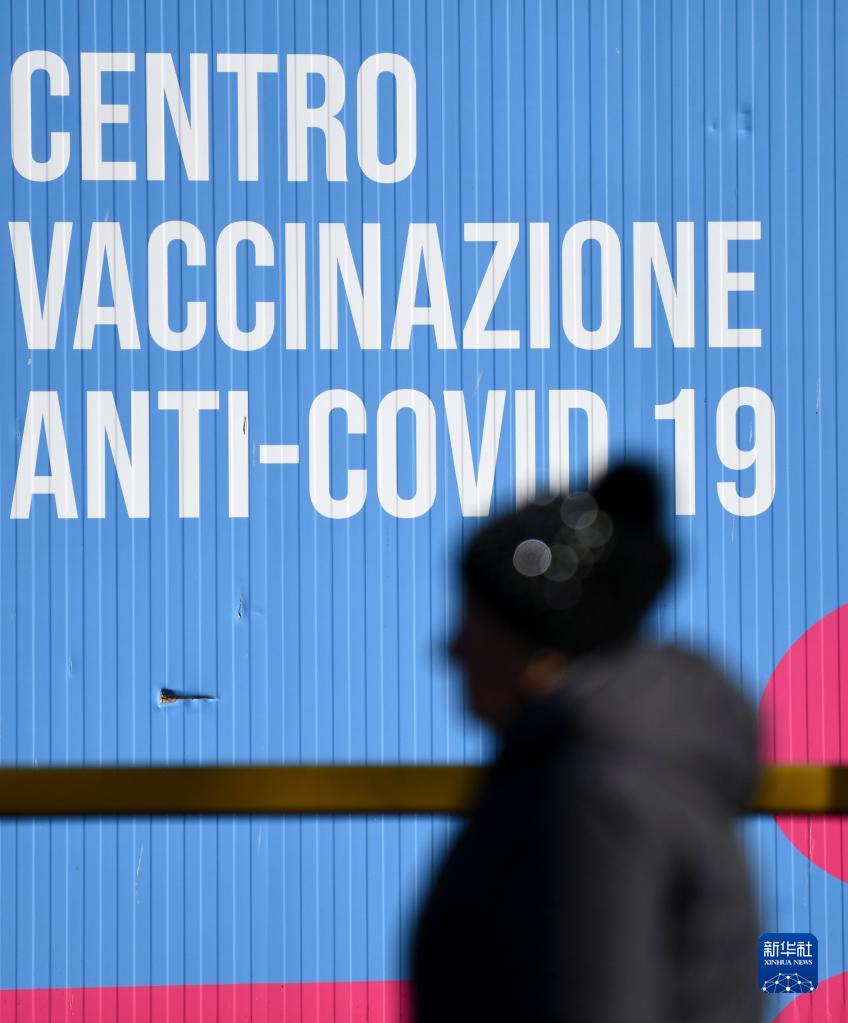 1月24日,一名行人经过意大利罗马一处新冠疫苗接种中心。
