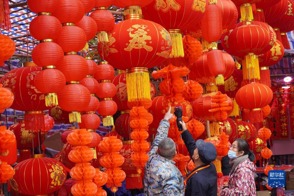 1月29日,市民在广西南宁市上海路年货市场选购大红灯笼。