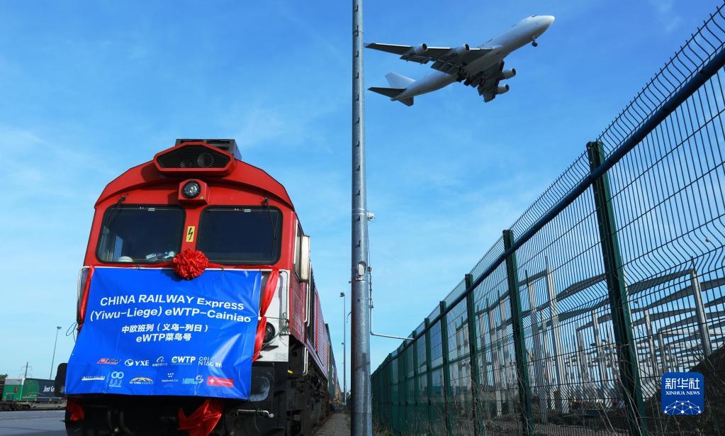 2019年10月25日,满载着82个标准箱的中欧班列(义乌—列日)“世界电子贸易平台(eWTP)菜鸟号”首趟列车抵达比利时列日物流多式联运货运场站。