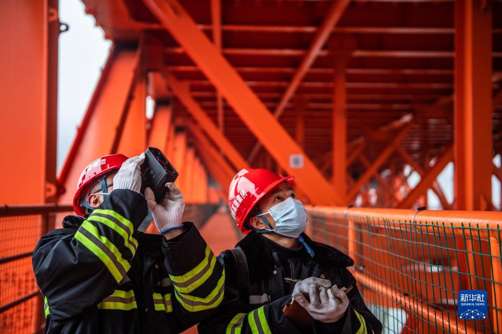 贵州高速集团水城营运中心俄脚桥隧站职工在桥体内部利用望远镜进行巡查(1月29日摄)。