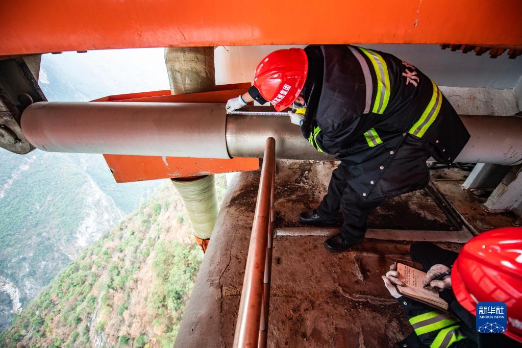 贵州高速集团水城营运中心俄脚桥隧站职工在测量大桥伸缩梁的伸缩距离(1月29日摄)。