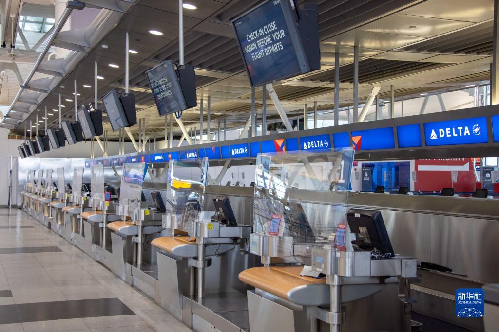 1月29日,在美国纽约肯尼迪国际机场,值机大厅内空空荡荡。