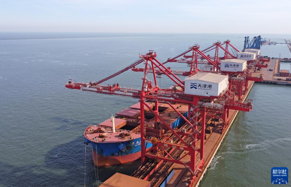 这是1月28日拍摄的天津港南疆港区26泊位(无人机照片)。