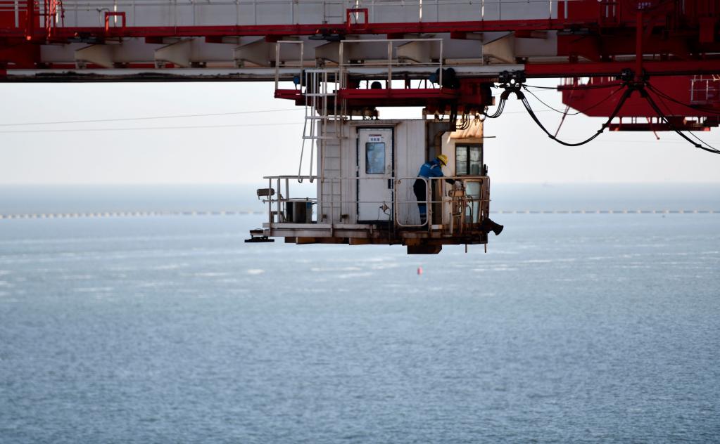 在南疆港区26泊位,卸船机的驾驶舱位于岸桥的三层平台处,距离海面垂直高度约45米,司机师傅们在不足3平方米的驾驶舱内一待就是12个小时。卸船机舱驾驶位的下方和前方为全景式玻璃窗,司机需要长时间“猫着腰”向下观察,并克服不时的轻微晃动,以确保操作的精准和安全。