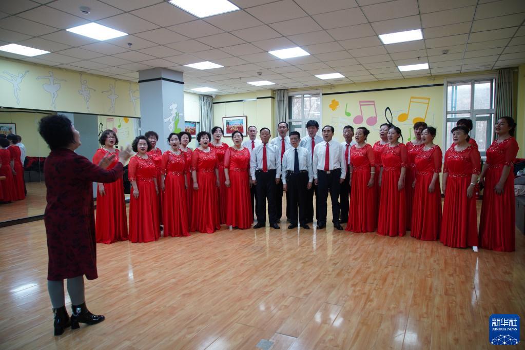 青海省西宁市城西区文汇路街道文亭巷社区,“歌之缘”合唱团的老人们在排练(1月27日摄)。
