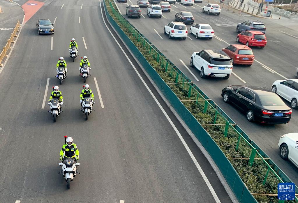 1月30日拍摄的北京市公安局门头沟分局交通支队的“绿色铁骑队”。