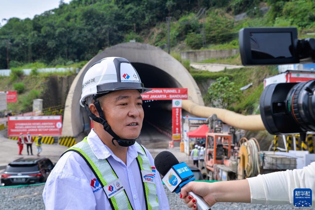 1月28日,在位于印度尼西亚西爪哇省普哇加达县的雅万高铁2号隧道施工现场,负责2号隧道施工的中国电建水电七局项目分部经理周朝德接受新华社记者采访。新华社记者 徐钦 摄