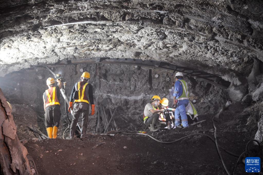 1月28日,在印度尼西亚西爪哇省普哇加达县,工作人员在雅万高铁2号隧道内作业。新华社记者 徐钦 摄