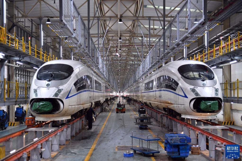 春运期间车组上线率高,检修队较平时更加忙碌。她们在车厢内巡查、检修,保障乘客出行。