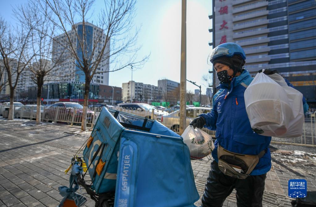 1月31日,在天津市南开区,外卖员准备配送外带年夜饭订单。