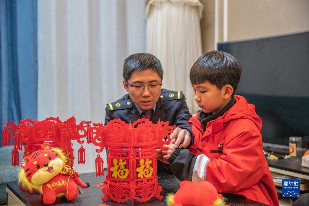 1月30日,王昀和儿子在家里一起组装新春灯笼,准备迎接罗敏回家。