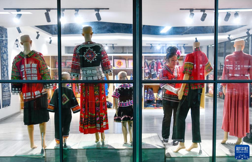 1月30日,杨美在制衣厂里整理民族服饰。新华社记者 杨文斌 摄