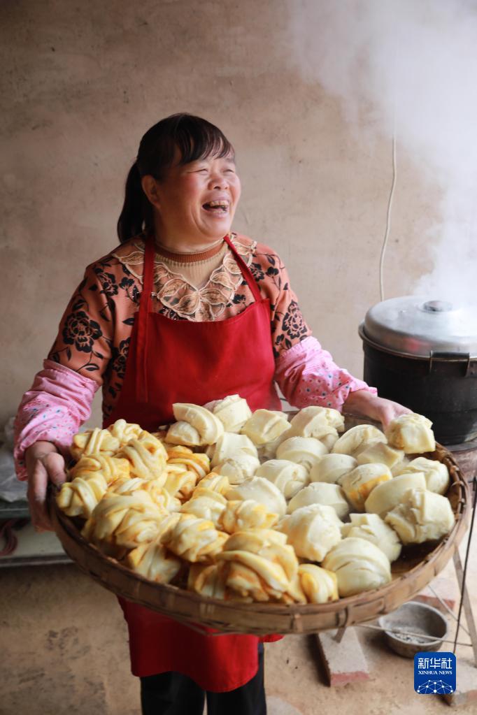 在兰州市七里河区西果园镇袁家湾村,村民柴玉红在家中捧着刚蒸好的馍馍(1月26日摄)。