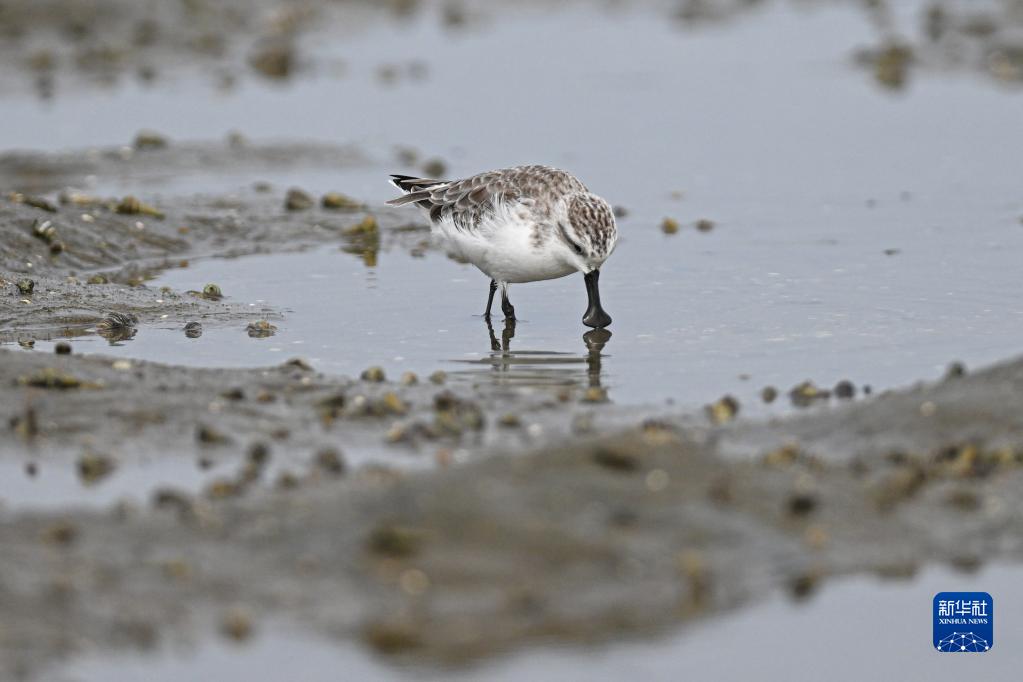 1月20日,一只勺嘴鹬在海南儋州湾一处湿地觅食。勺嘴鹬是珍稀濒危鸟类,也是陈正平和儋州湾湿地护鸟队监测、巡护的重点。