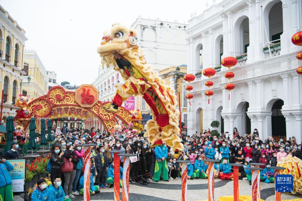 当日是大年初二,澳门旅游局在议事亭前地举办“龙腾舞跃贺新春”活动,吸引不少市民观赏。