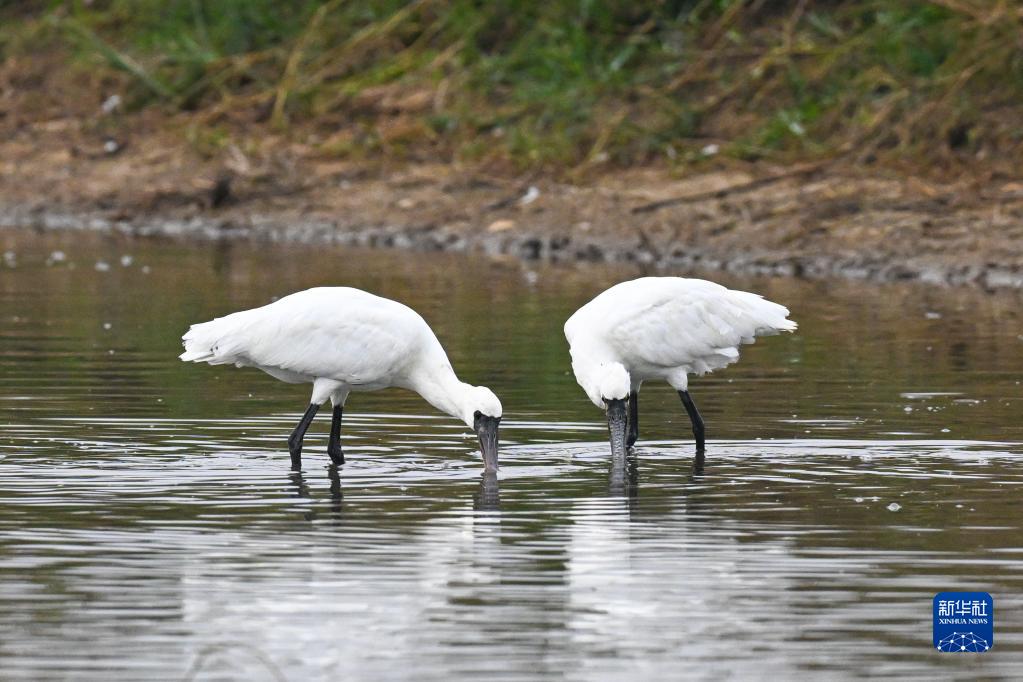 这是1月24日在海南儋州湾湿地拍摄的黑脸琵鹭。