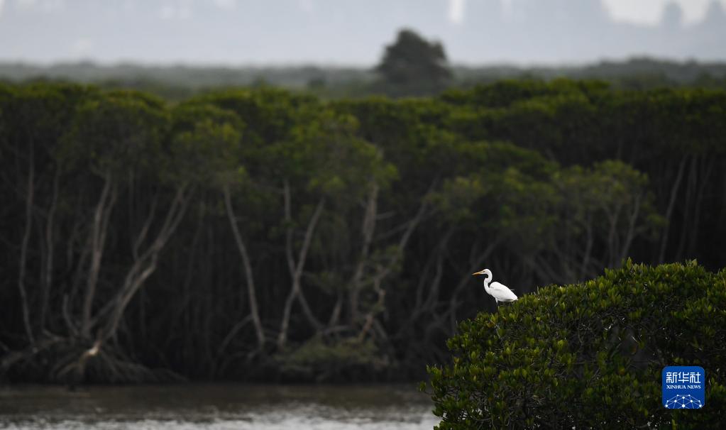 一只白鹭在海南东寨港国家级自然保护区休息(1月28日摄)。