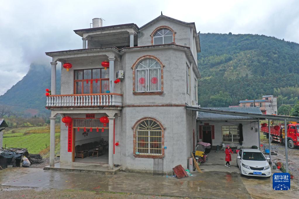 过年了,周龙富的家里张灯结彩(2月1日摄,无人机照片)。
