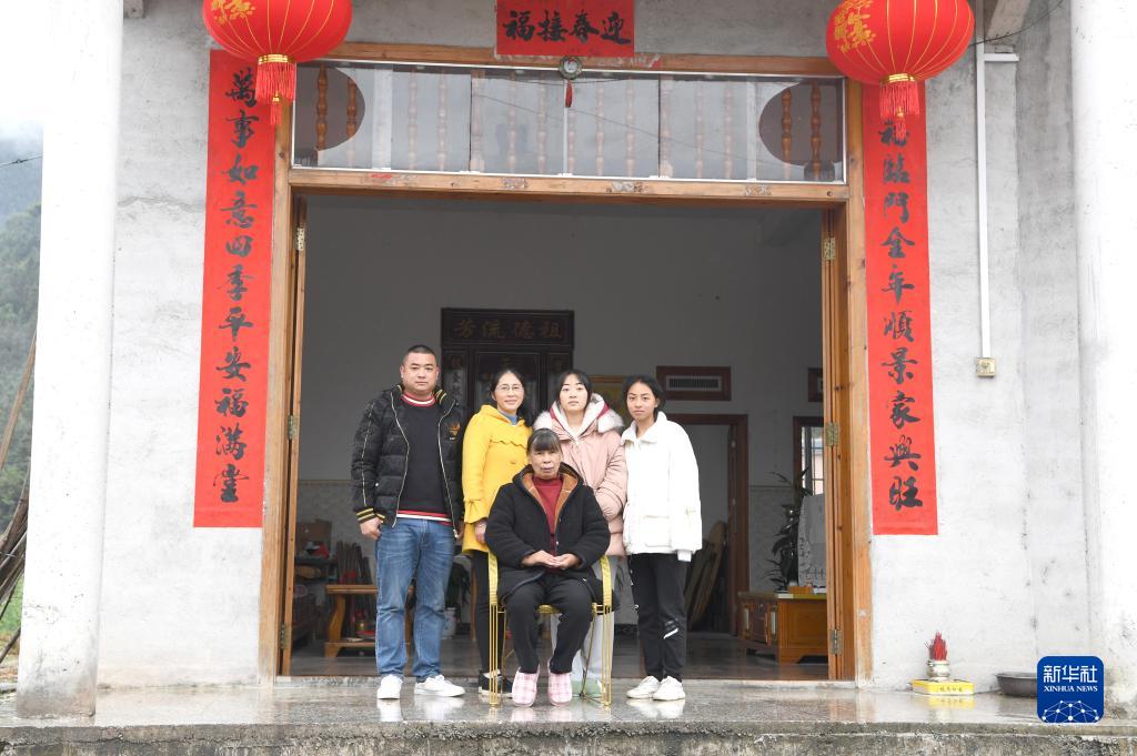 周龙富一家人在家门前合影(1月29日摄)。