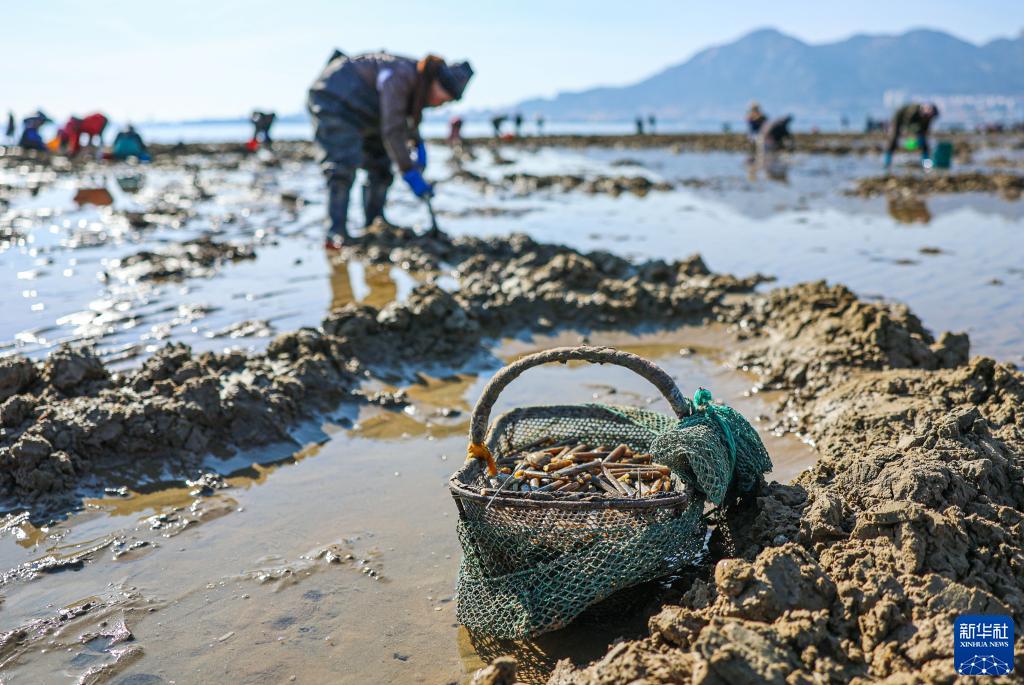 2月3日,市民在山东省荣成市海滨“赶海”。