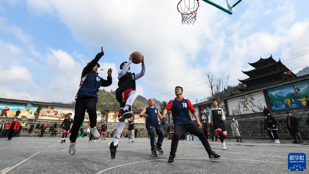 2月3日,在湖南省古丈县默戎镇龙鼻嘴村,村民在进行篮球比赛。