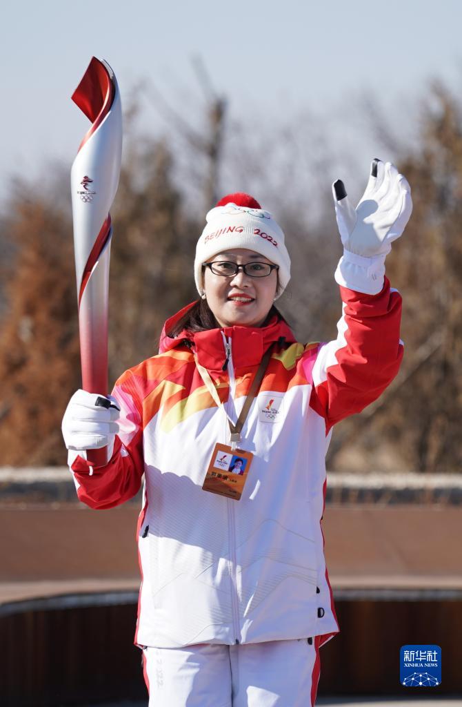 2月3日,火炬手郭墨涵在火炬传递中。