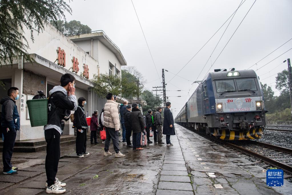 在和家乡同名的网红小站“柏林站”,马丁和老乡们一起等待“慢火车”进站(1月27日摄)。