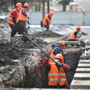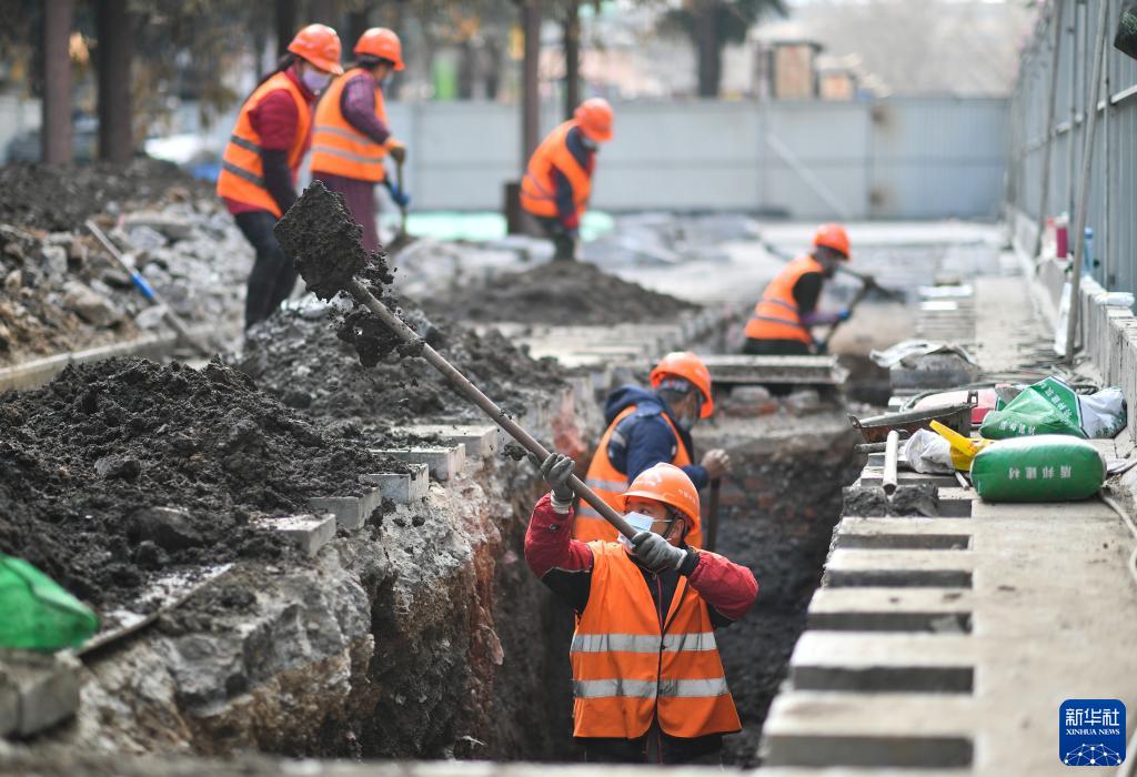 2月4日,中铁一局建筑安装公司工人在西安地铁六号线钟楼站项目施工现场工作。