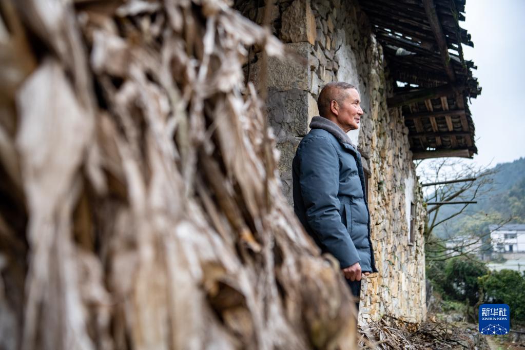 杨建庆在老宅子前眺望新家的方向(1月29日摄)。摄影记者 唐奕 摄