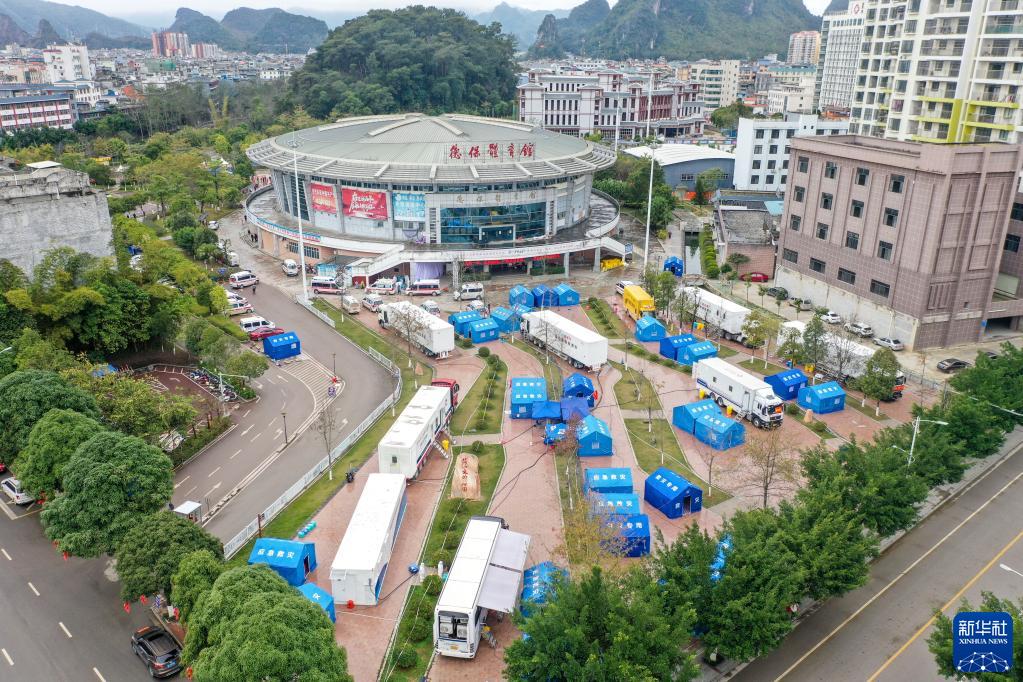 这是2月9日拍摄的广西德保县临时设置的移动方舱实验室(无人机照片)。